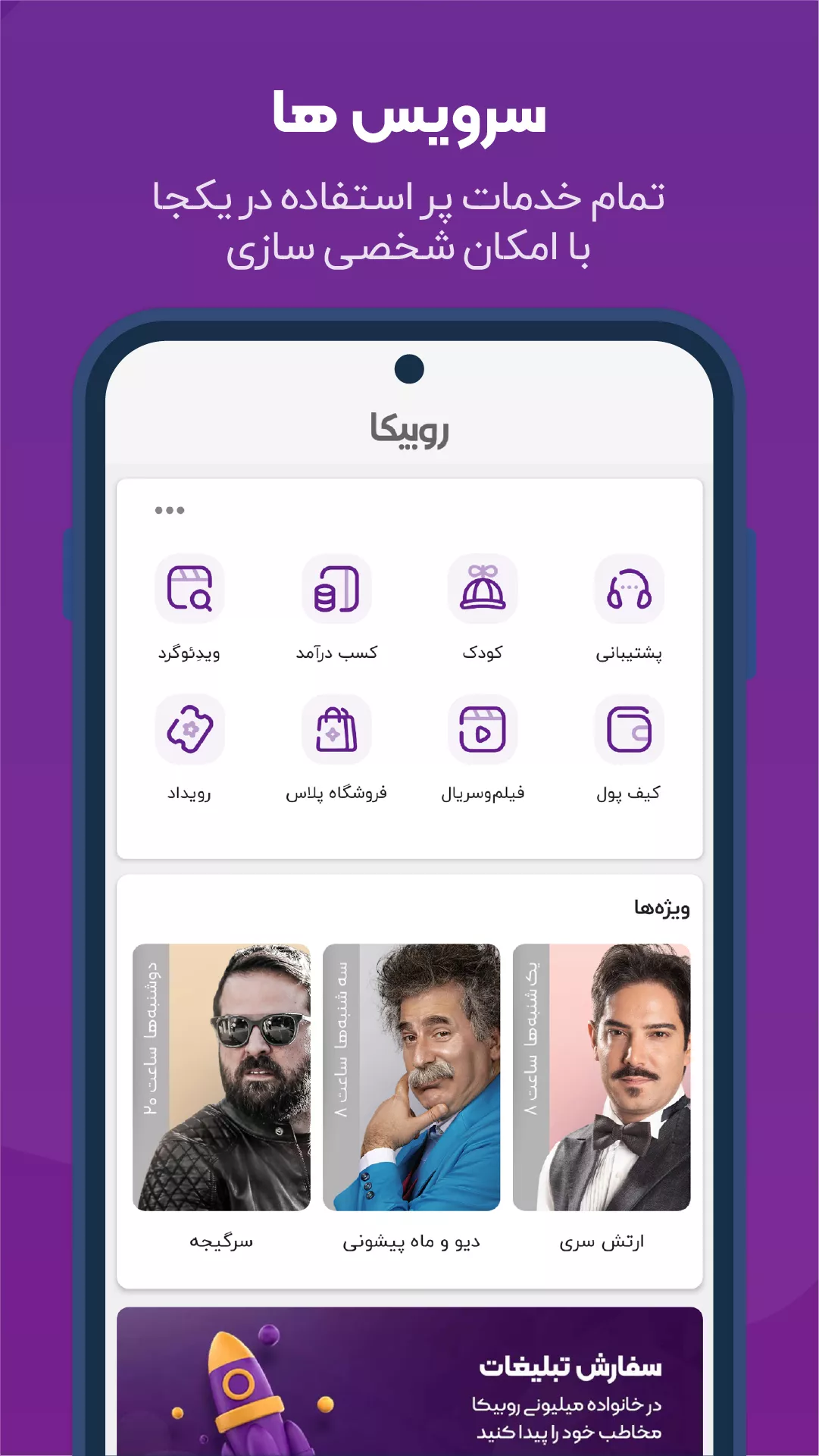 با نصب روبیکا به ویژگی های زیر دسترسی خواهید داشت: