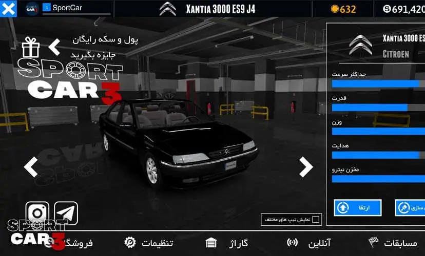 ویژگی های ماشین اسپرت 3 مود و هک شده بی نهایت: